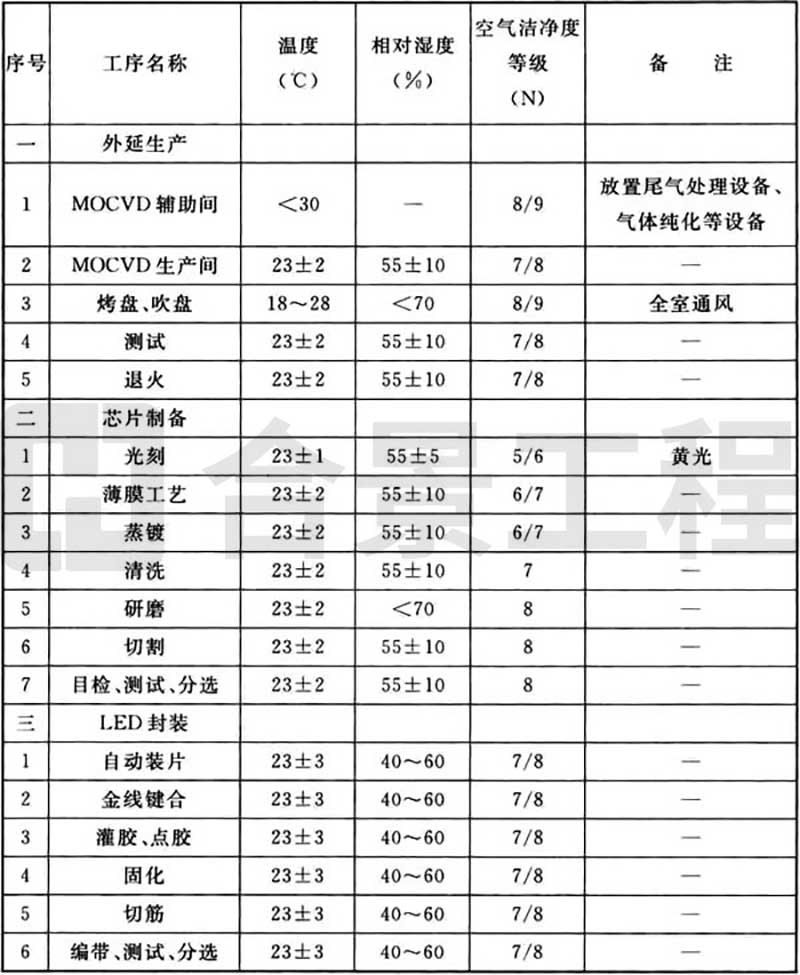 表A 發(fā)光二極管典型生產(chǎn)環(huán)境要求